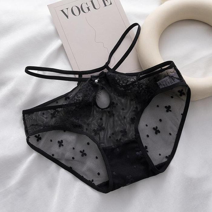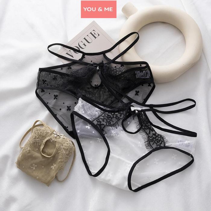 Promo Celana Dalam Wanita Jala Renda Bulu Mata Motif - Hitam M Elegan