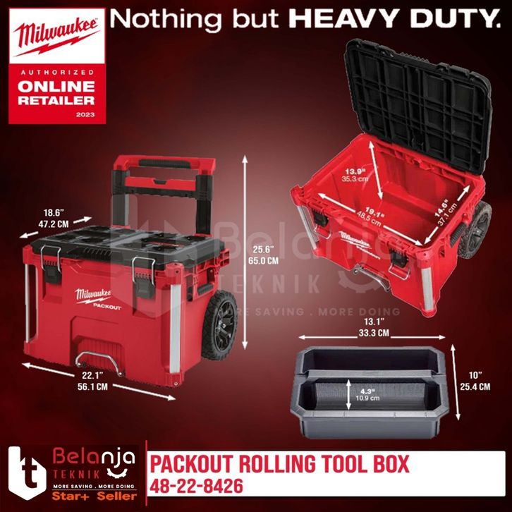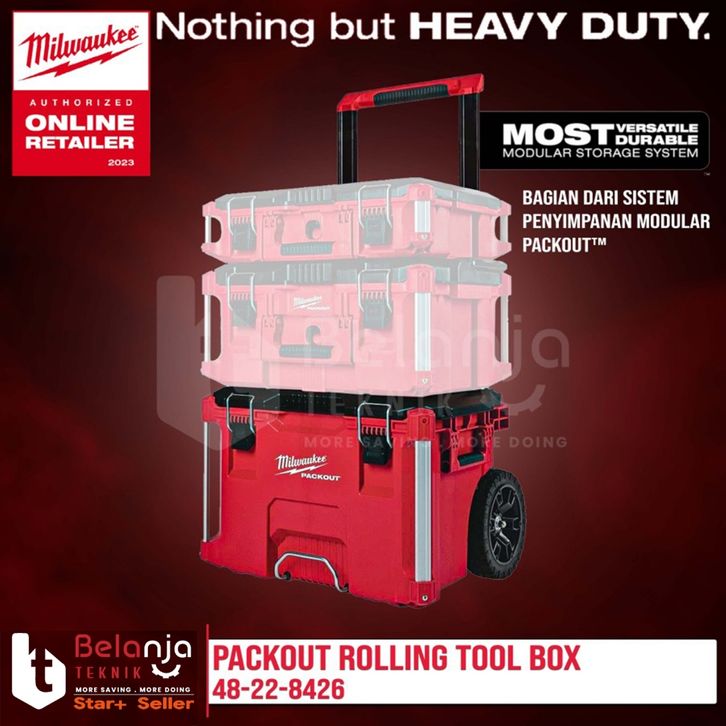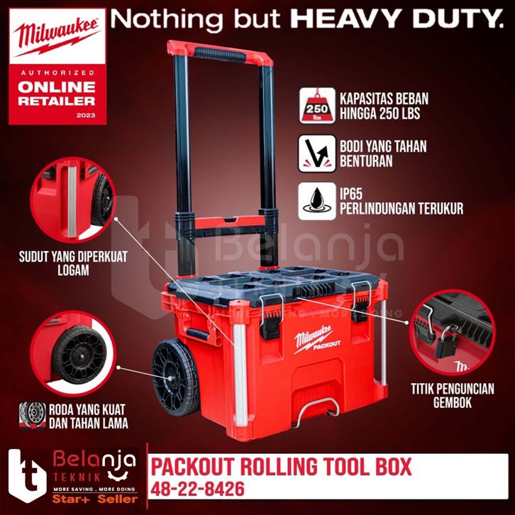 Milwaukee Packout Rolling Tool Box Tempat Perkakas Toolkit 48-22-8426
