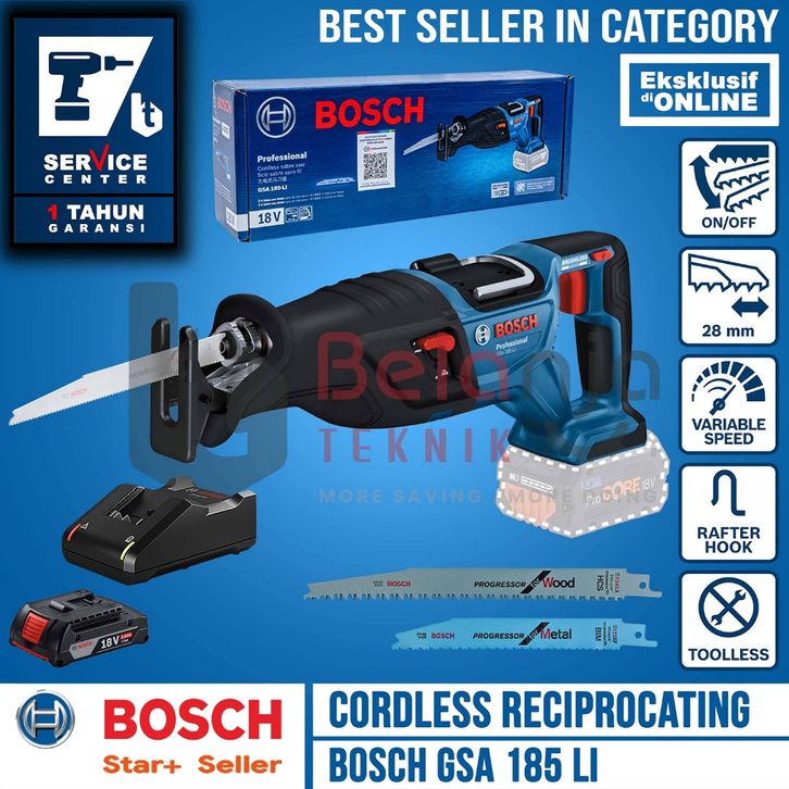 Bosch Mesin Potong Sabre Saw Cordless GSA 185-Li + Charger Baterai 2AH