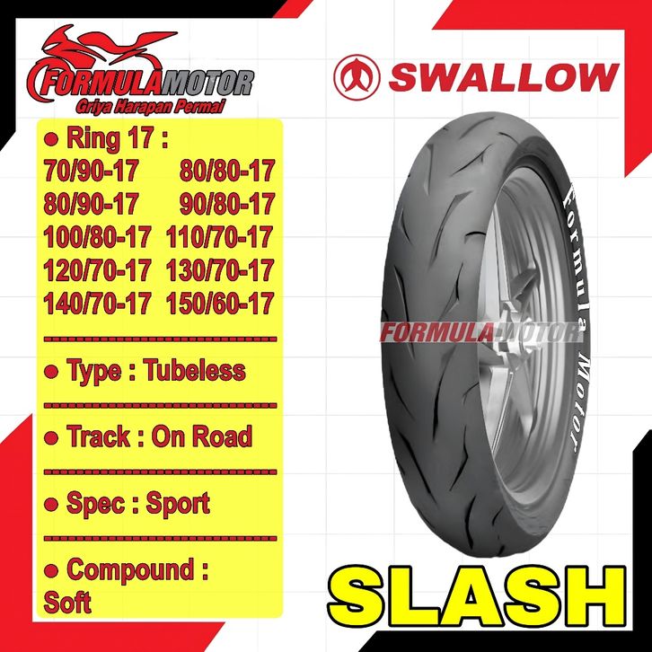 Swallow Slash Ring 17 Tubeless All Size (Profil Donat Soft Compound) Ban Motor Tubles SB151 SB-151 (70/90-17, 80/80-17,