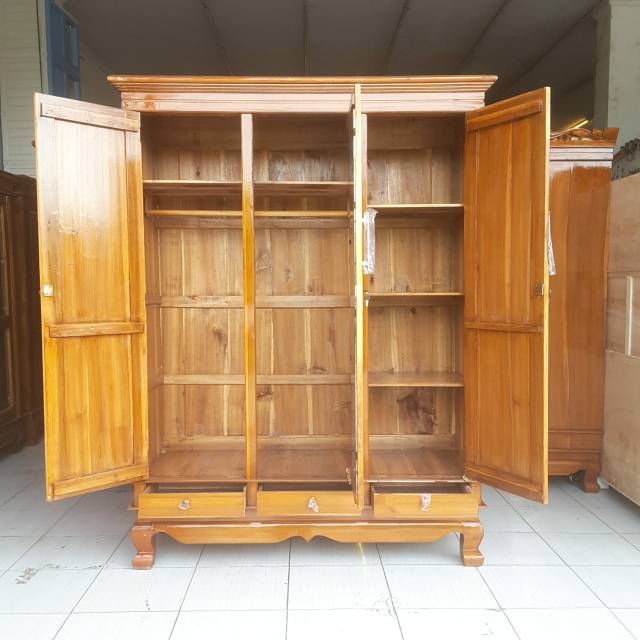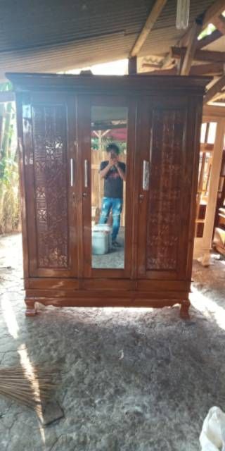 Lemari Pakaian Jati 3 Pintu Pakai laci