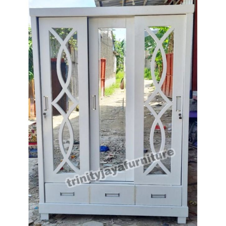 Lemari Pakaian 3 Pintu Sliding Kayu teack-/trinityjayafurniture