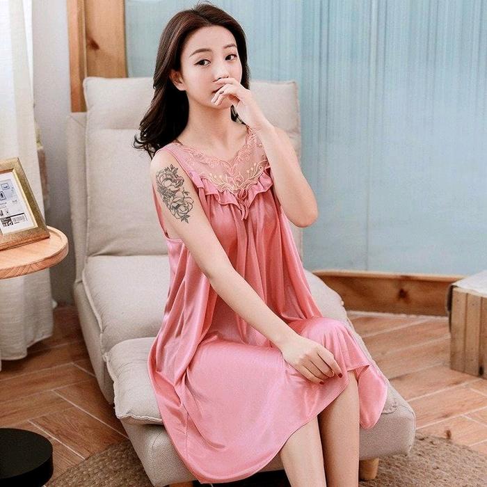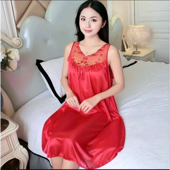 Promo Baju tidur Daster Tile Bunga Satin / XXL Lingerie Panjang Wanita Dress - Tile bunga Hitam XXL Keren