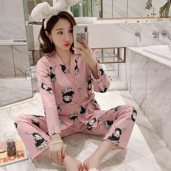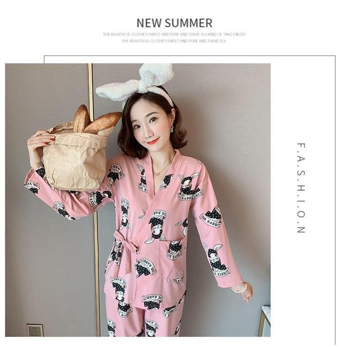 Terlaris Baju Tidur Baju Rumah Santai Daster Wanita Baju Kimono Jepang Import Daster Lucu Motif - pink Kelinci Elegan
