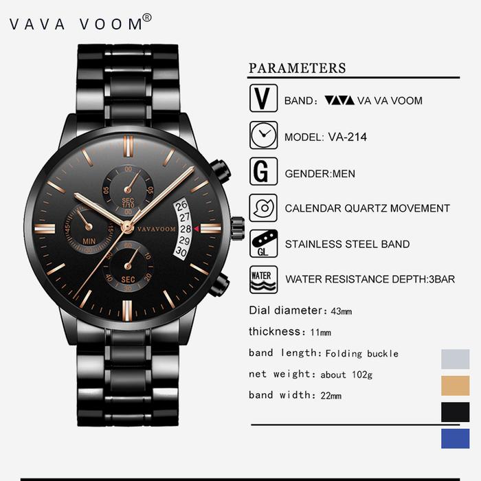 Terlaris Jam Tangan Pria VAVA VOOM 100% Original Kronograf 214 hadiah watches - Hitam em4s Elegan
