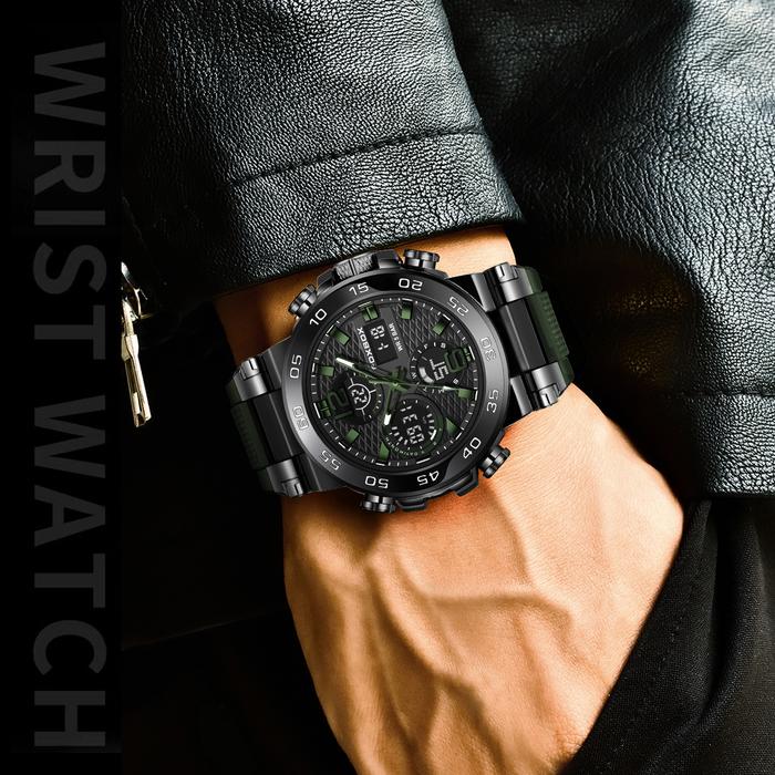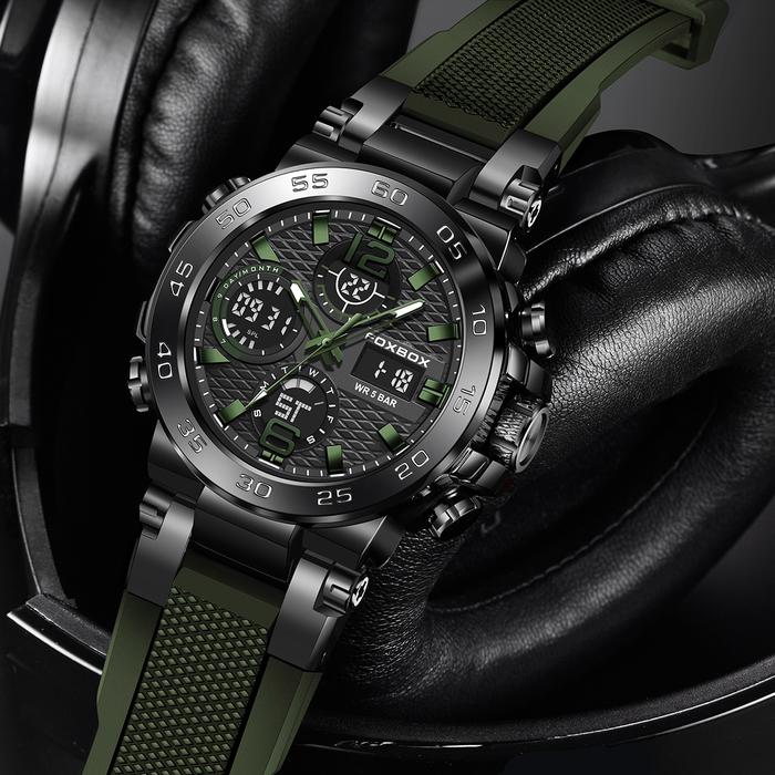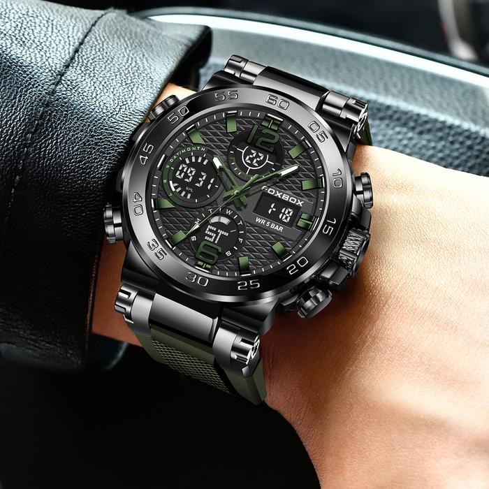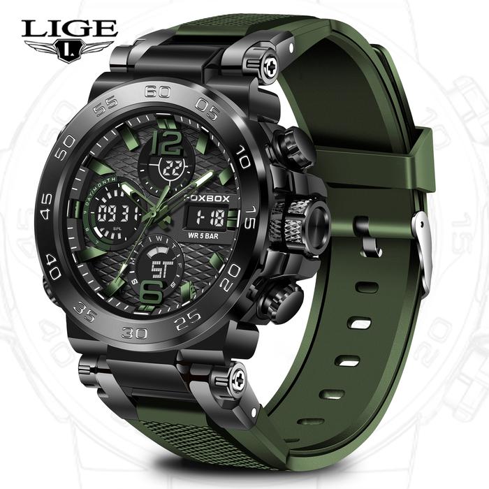 Terlaris LIGE x FOXBOX Jam Tangan Pria Dengan Layar Ganda Tahan Air Bercahaya Jam Tangan Sport Men Watch - hitam Elegan
