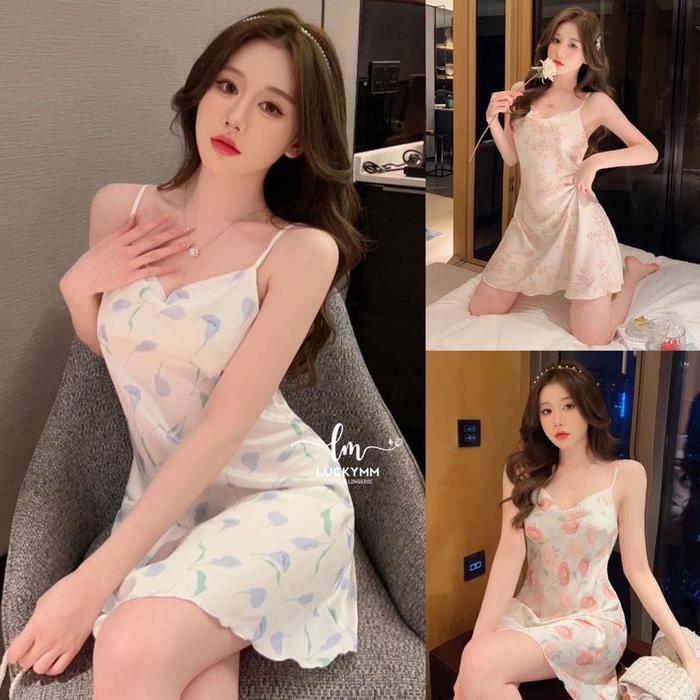 Promo Luckymm Dress Sleepwear Daster Wanita Bahan Satin 332 - Hitam Love Keren