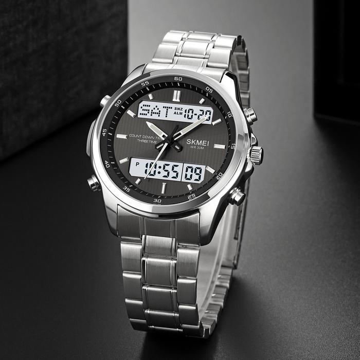 Murah Jam Tangan Pria Analog-Digital Chronograph Dual Time Stainless Steel Tahan air SKMEI 2049 - Silver Putih Elegan