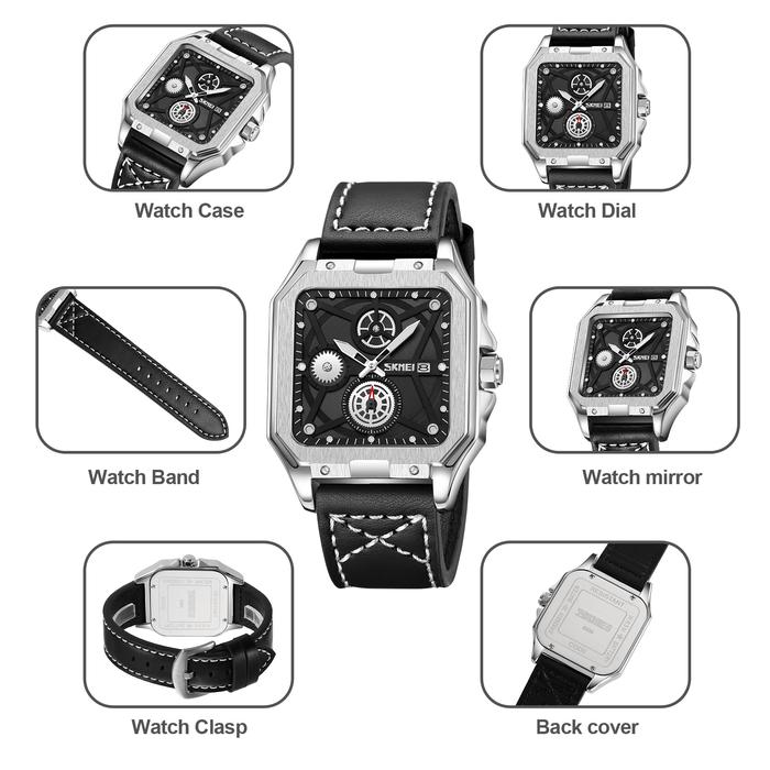 Murah Jam Tangan Pria Analog Chronograph Tali Kulit SKMEI 9330 - Silver Brown Keren