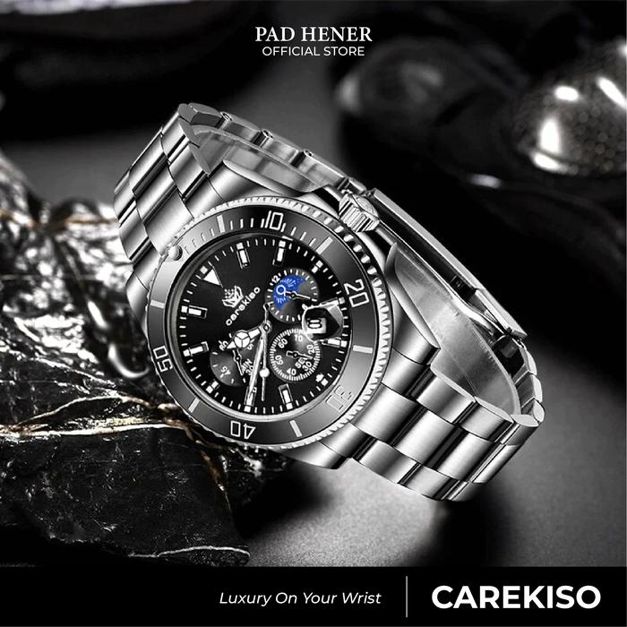Terlaris CAREKISO Stainless Steel Jam Tangan Pria Original Water Resistant Hitam Watches - Black Keren