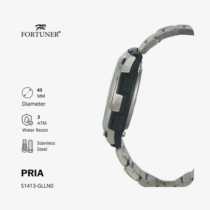 Murah Fortuner Jam Tangan Digital Pria Silver Water Resistant Felton Keren
