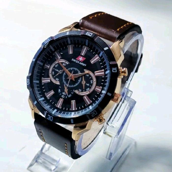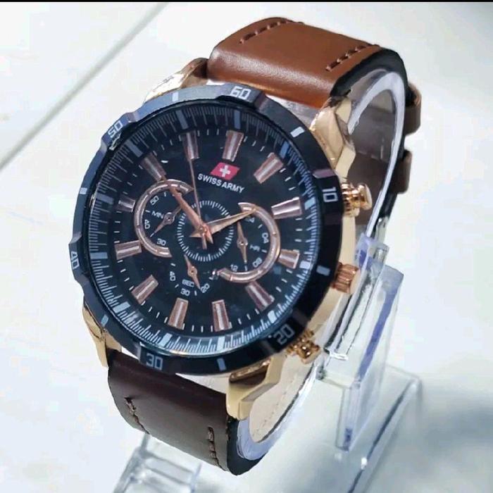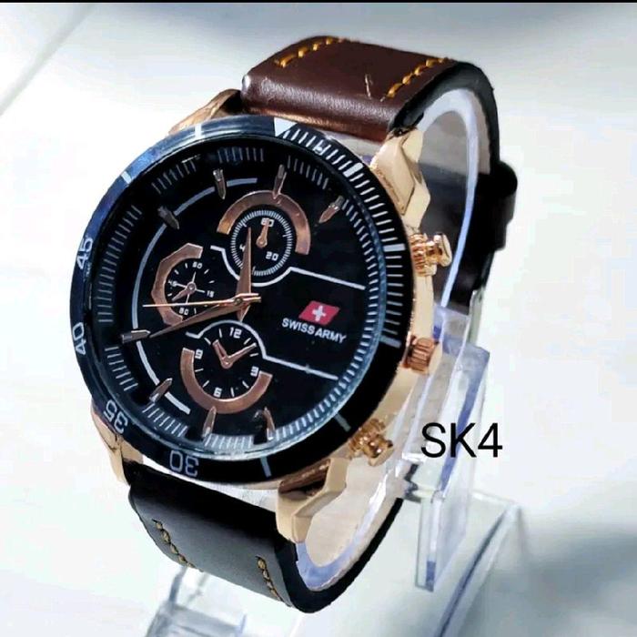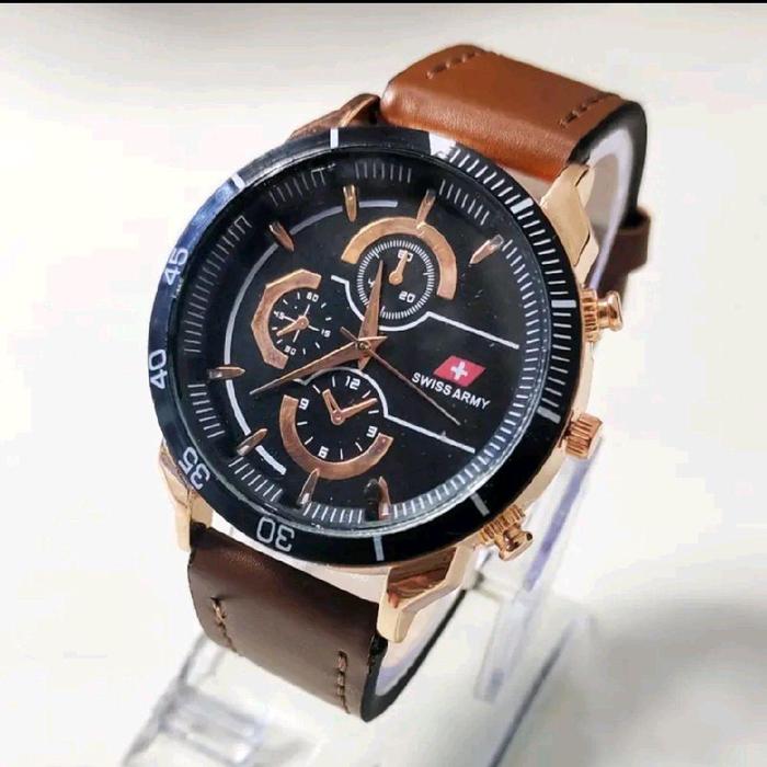 Murah Jam Tangan Pria Kulit Model Bulat Tampilan Elegan Luxury Fitur Analog Watches Aksesoris - Hitam cr 2 Keren