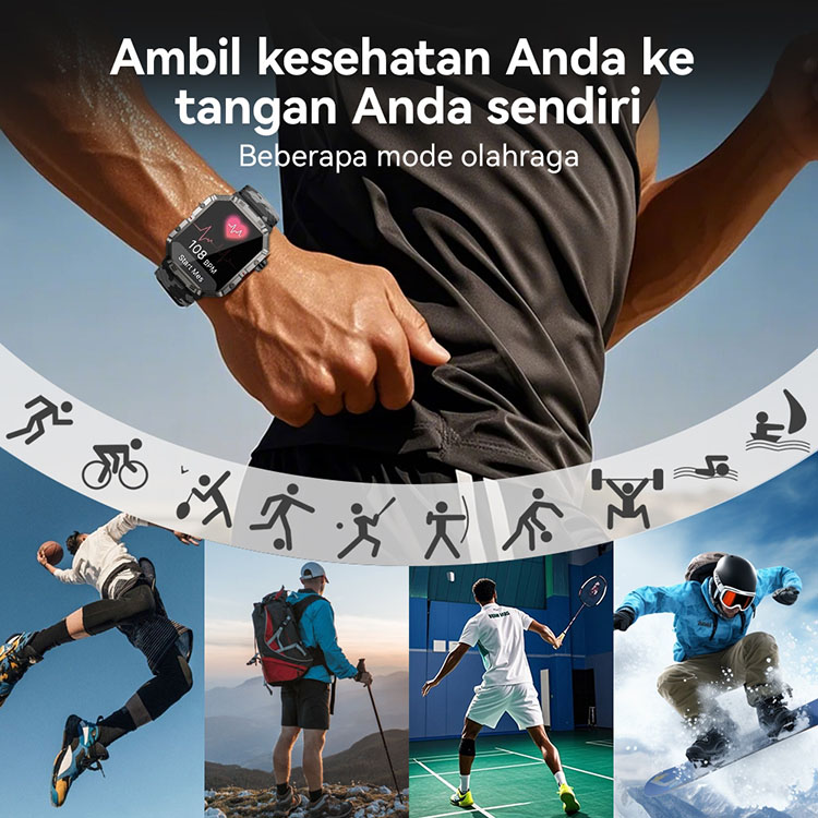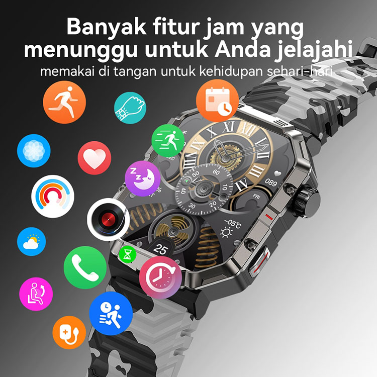 GMove GW55 Military Smartwatch Outdoor Sport Tahan Air IP68 Sleep Health Monitor Jam Tangan Pria