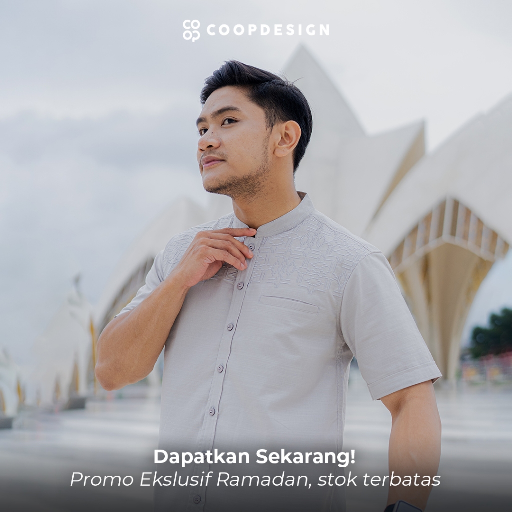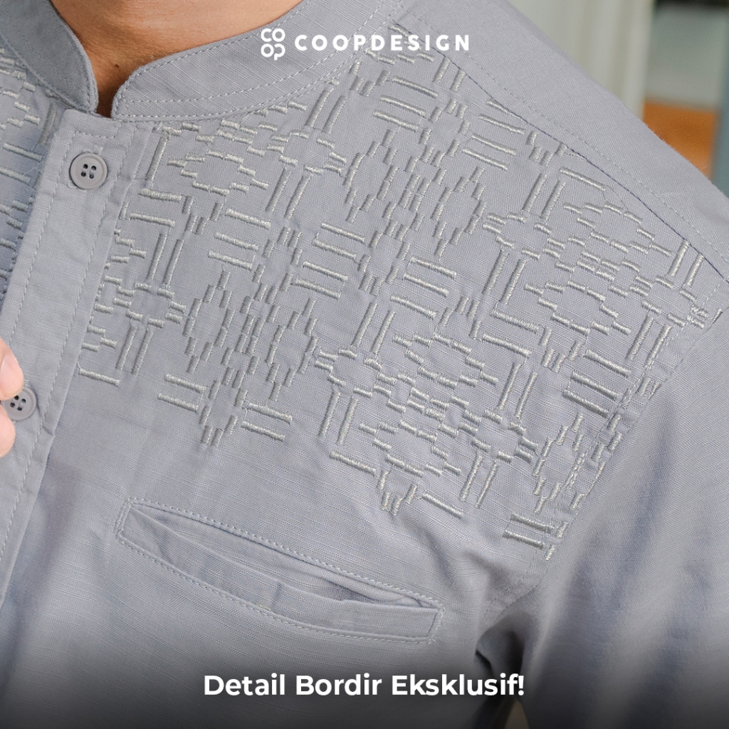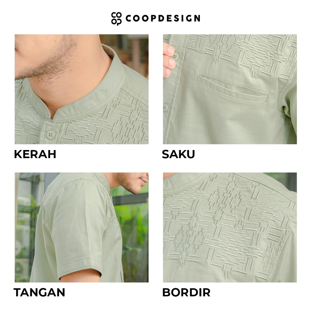 [Exclusive Baju Lebaran 2025] Coop Design - Fatih Koko Bordir Kerah Changi Collarless Katun Lengan Pendek Pria
