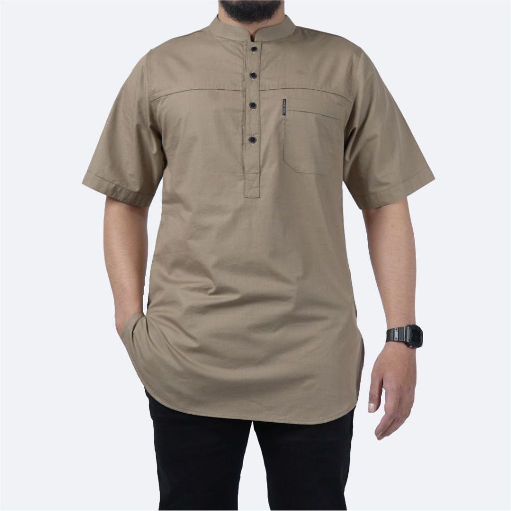 KHOIRUMMAH Kurta Hamzah Dewasa | Baju Muslim Pria Dewasa Tangan Pendek - Cream