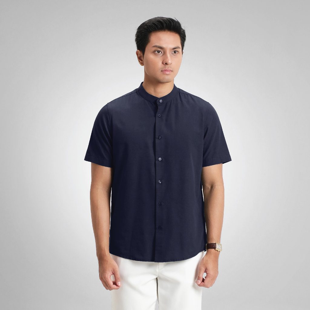 CUTOFF Vito Linen Collarless Shirt Kemeja Koko Casual Premium Basic Polos Pria Lengan Pendek
