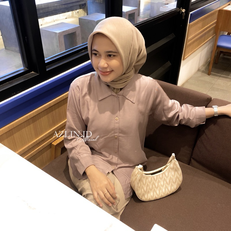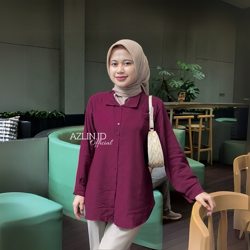 Kemeja Wanita A.Z Rayon Twill Polos Balon Top Blouse Basic Kemeja Wanita Lengan Panjang Wanita Oversize Jumbo