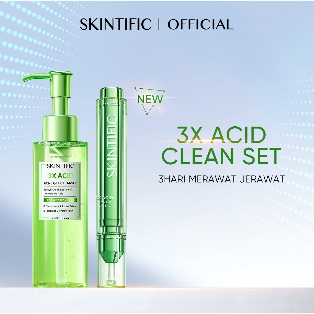 SKINTIFIC - 3X Acid Intensive Acne Spot Set | Salicilyc Acid Spot Serum Salicylic Lactic Lactobionic Acid Excess