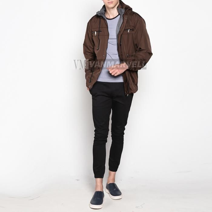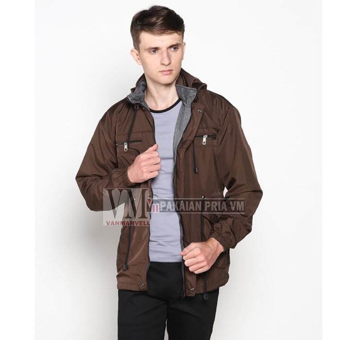 VM Jaket parka Bolak Balik Hijau Army - Jaket Fashion Parasut Fleece - Cokelat M