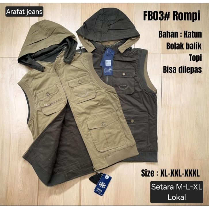 Promo Rompi Pria Rompi jeep dht Topi Bolak Balik import /Rompi kupluk pria cargo