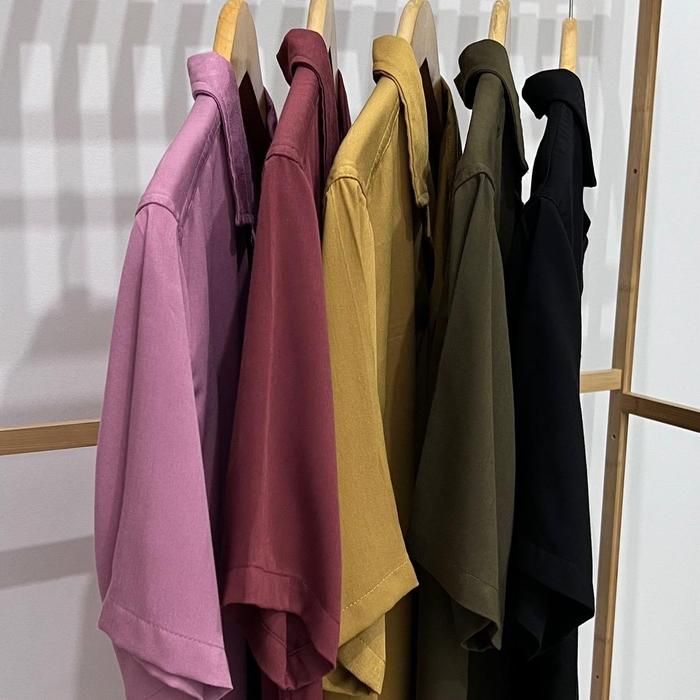 CLUSTERCOOL Kemeja Pantai Polos Rayon Twill Basic Shirt Pria Katun Baju Casual Distro Dewasa - Black M