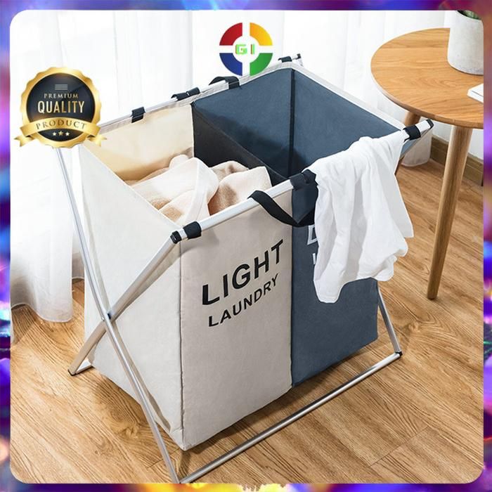 (GI) Keranjang Tempat Pakaian Cucian Baju Kotor Laundry Aesthetic Jumbo Bag Three Grid