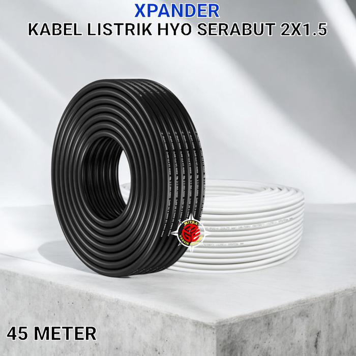 Terlaris XPANDER Kabel Listrik HYO Ser4but 2 x 1.5mm Panjang 45 Meter - Putih/Hitam - 45 METER PUTIH Keren
