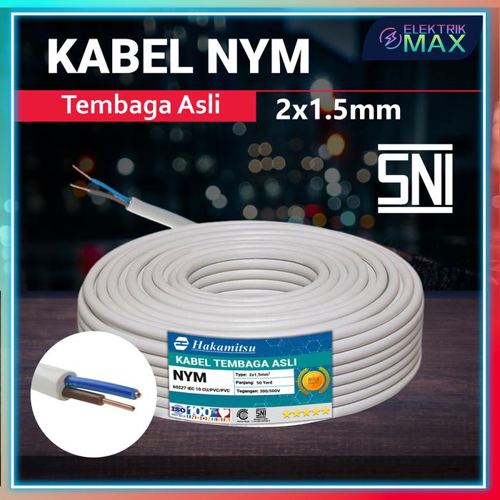 Murah [MAX] Kabel NYM 2 x 15mm 50 Yard FULL / Kabel Listrik Tembaga Murni PVC SNI / Mrek Hakamitsu - PUTIH Keren