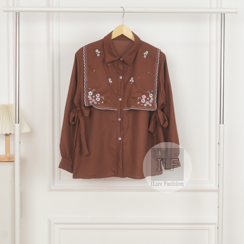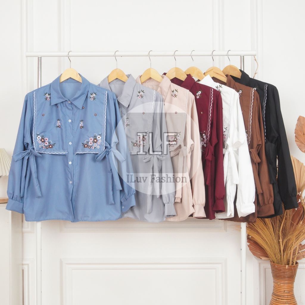 IL - Nakeya Shirt Atasan Kemeja Wanita Muslim Dewasa Bordir Korean Style Casual Daily