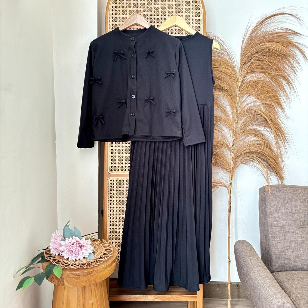 Najwa - READY STOCK Dress bonry Wanita cardigan dan dress plikset - gaun wanita