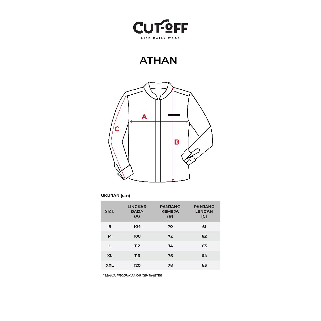 CUTOFF Athan Kemeja Koko Cotton Formal Basic Polos Pria Lengan Panjang