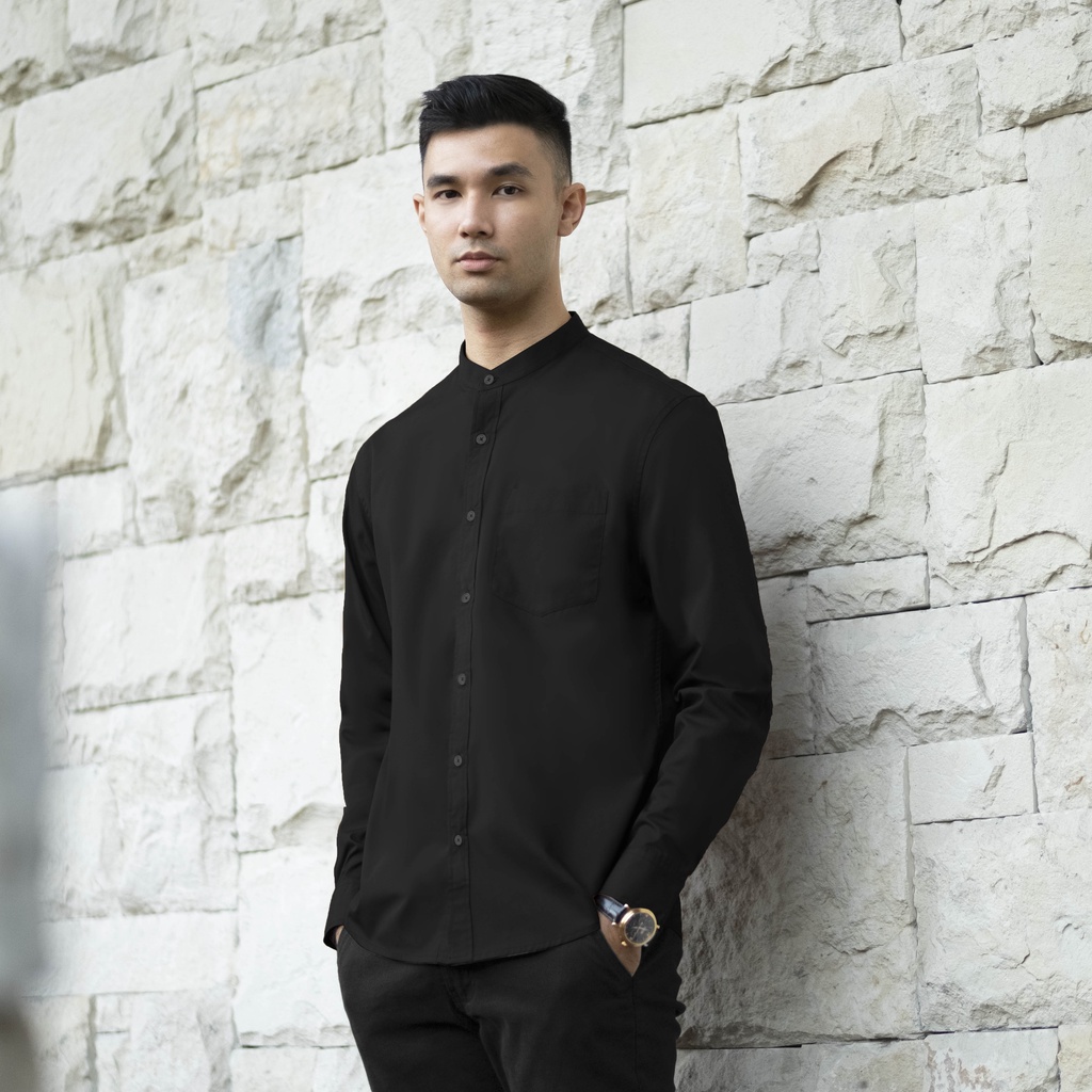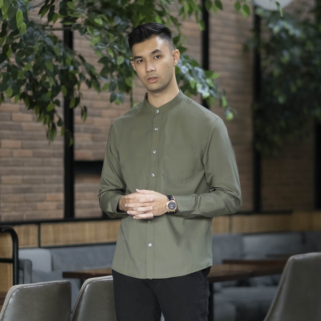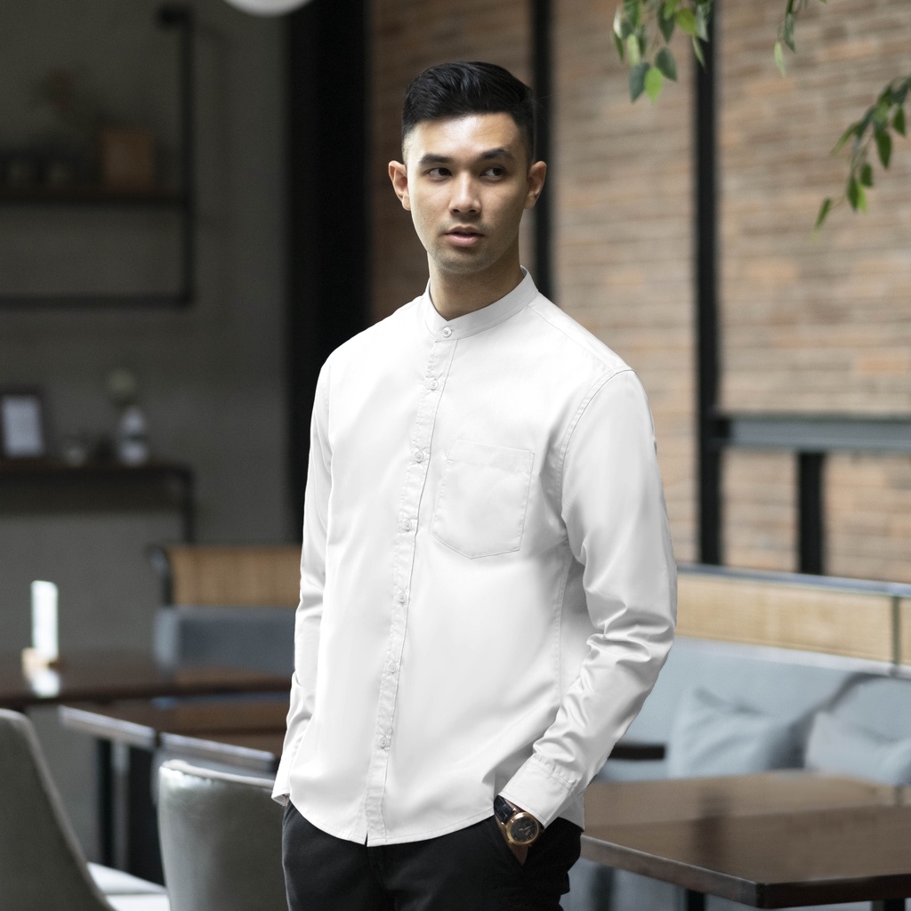 CUTOFF Zein Collarless Shirt Kemeja Koko Basic Pria Polos Panjang Cotton