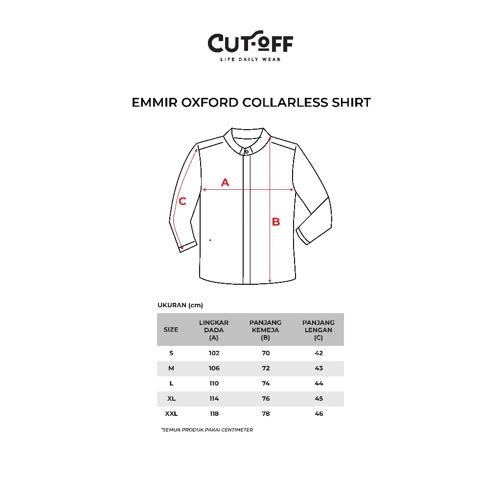 CUTOFF Emmir Oxford Collarless Shirt Kemeja Koko Basic Polos Pria Lengan ¾