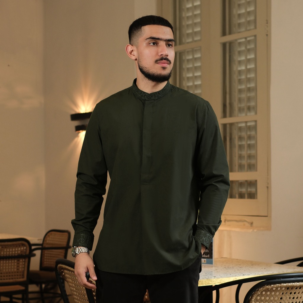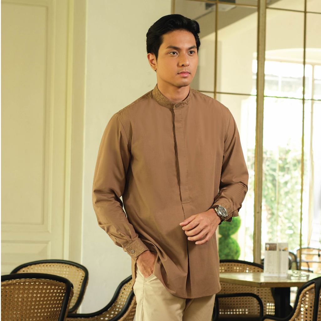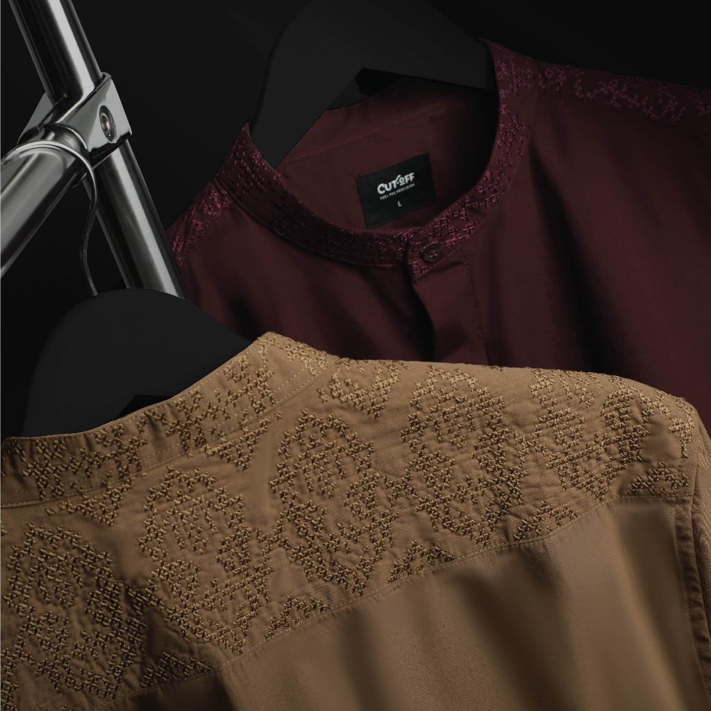 CUTOFF Ashraf Collarless Shirt Kemeja Koko Cotton Formal Kurta Basic Polos Muslim Pria Lengan Panjang