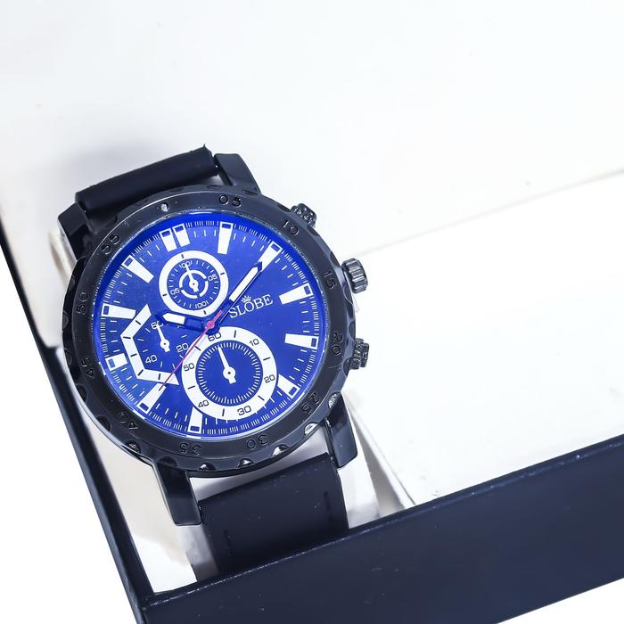 Murah FREE GELANG - JAM TANGAN PRIA SLOBE 5549 ANALOG STRAP KULIT CHRONO VARIASI ANTI AIR - FULL HITAM Elegan