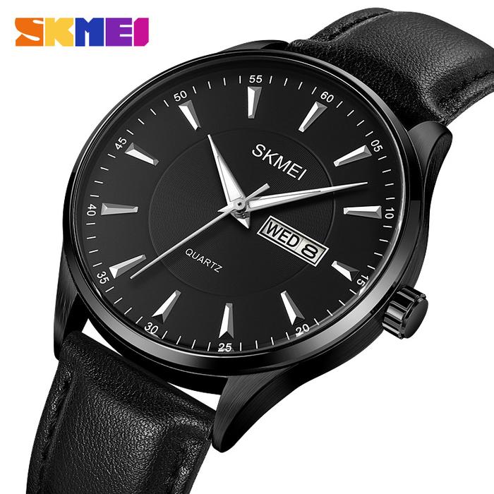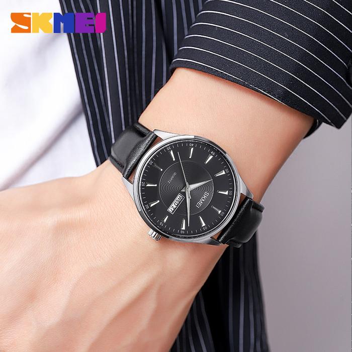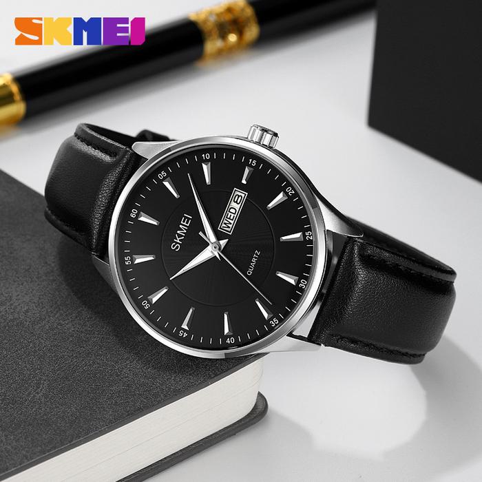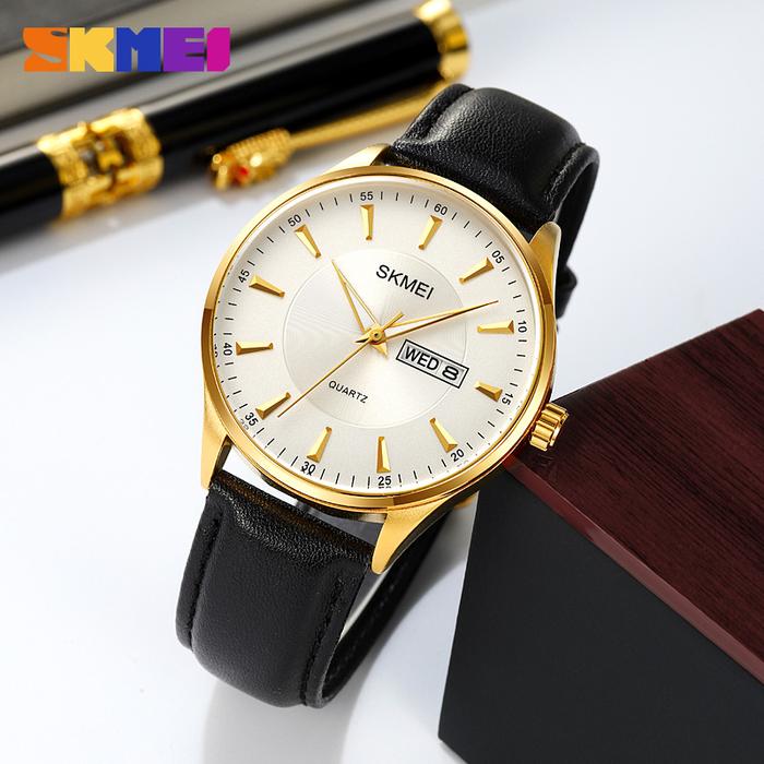 Terlaris Jam Tangan Pria Analog Tali Kulit SKMEI 2075 - g00ld Silver Keren