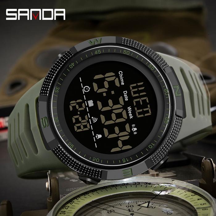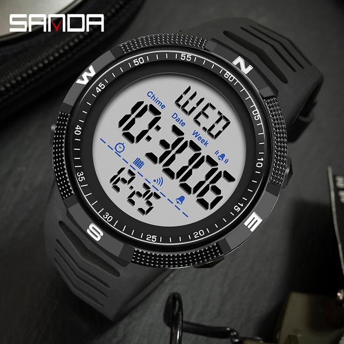 Promo Jam Tangan Pria Digital EL Backlight Sport Watch Anti Air SANDA 6014 - Hitam Hitam Elegan