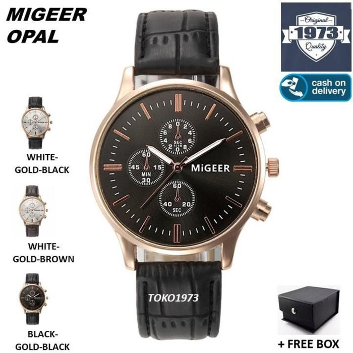 Terlaris MIGEER OPAL - Jam tangan pria arloji pria sporty men's watch - FREE BOX - WHITE BLACK Keren