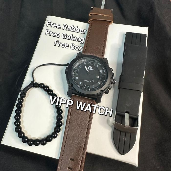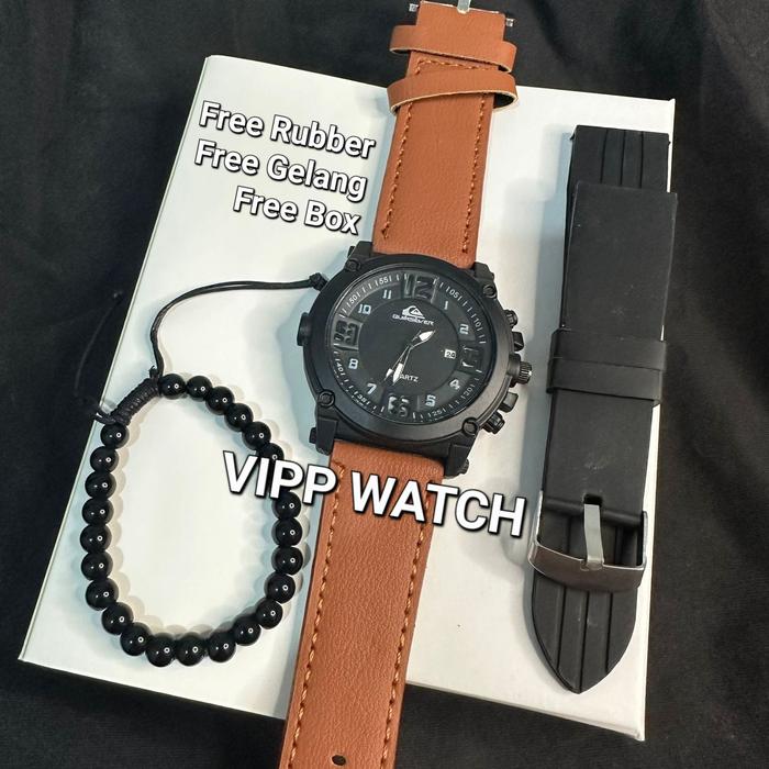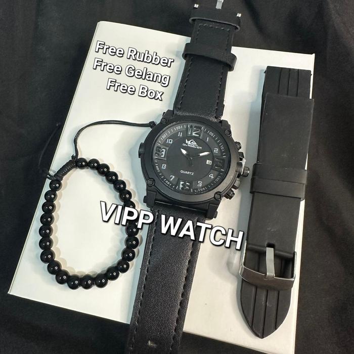 Promo JAM TANGAN PRIA KASUAL TALI KULIT TANGGAL AKTIF PAKET JAM TANGAN WATCHES - Hitam Keren
