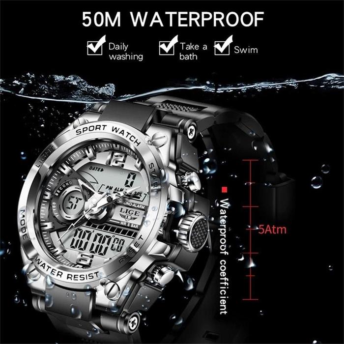 Promo LIGE Jam Tangan Pria Olahraga Baru Jam kuarsa tahan air militer digital mewah merek teratas - hitam Keren