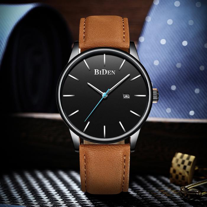 Murah BIDEN Jam Tangan Pria Kalender Bisnis Tali Kulit Jam Tangan Cowok - Cokelat Keren