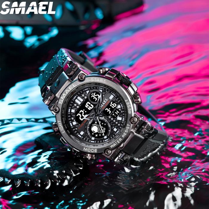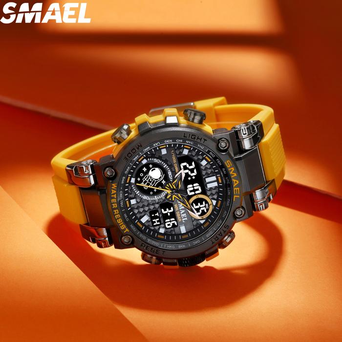 Terlaris Jam Tangan Analog Digital Pria Wanita SPORT Merk SMAEL 8093 - Hijau Army Keren