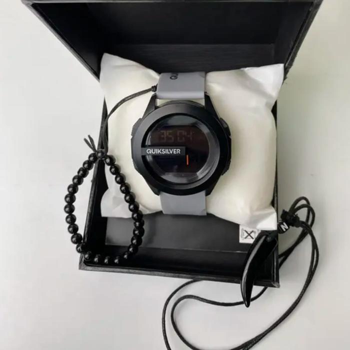 Promo JAM TANGAN QUIKSILVER PLAT DIGITAL STRAP RUBBER Pria Stopwatch - MERAH Box+Gelang+Kalung Elegan