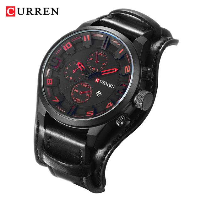 Murah Jam Tangan Pria Analog Tali Kulit CURREN 8225 - Brown Black Keren