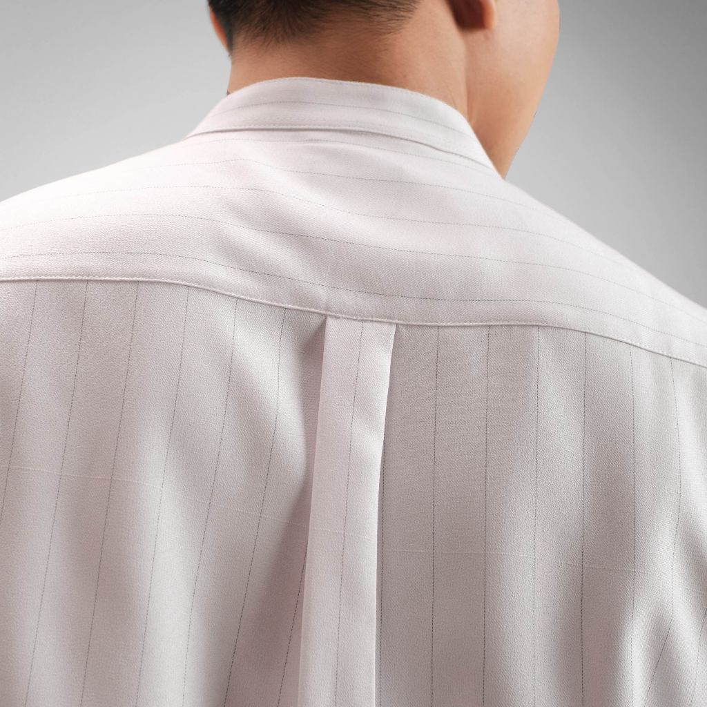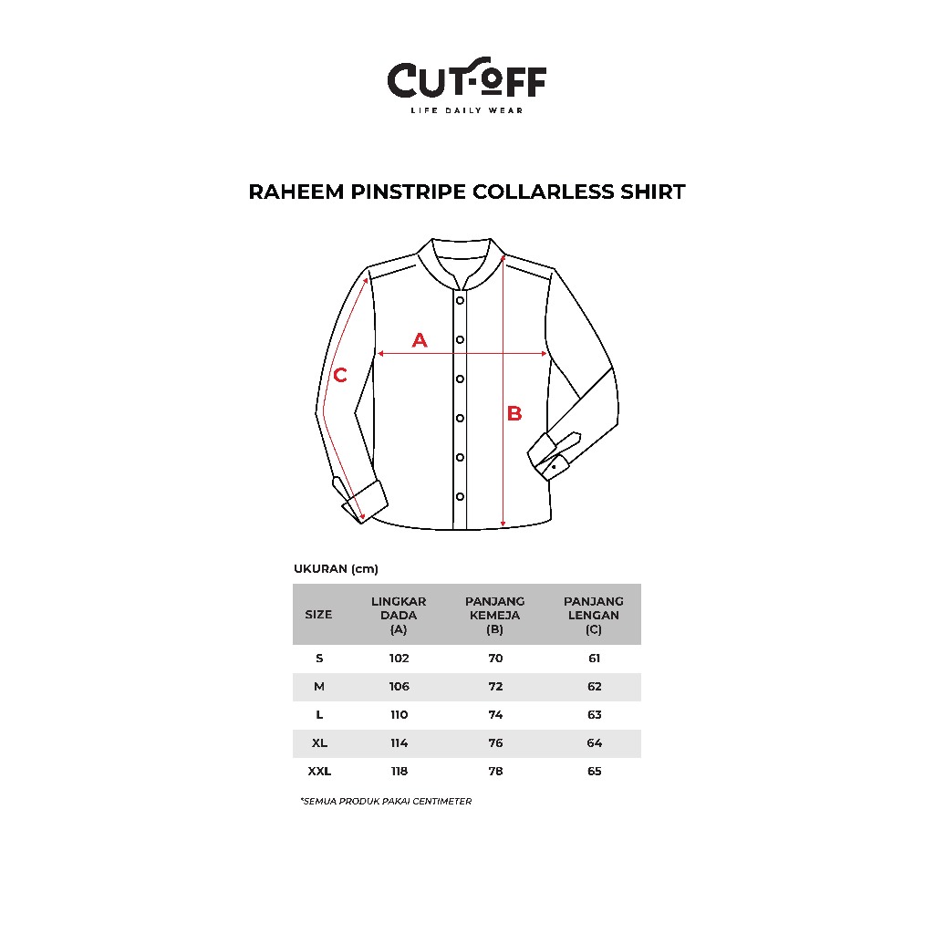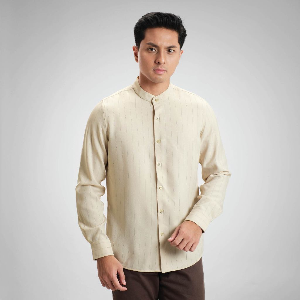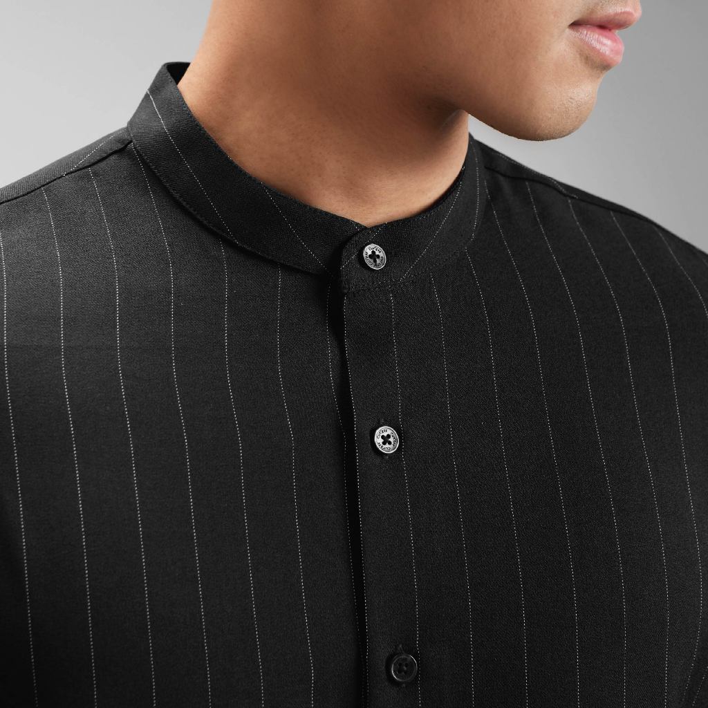 CUTOFF Raheem Pinstripe Collarless Shirt Kemeja Koko Salur Garis Pria Lengan Panjang