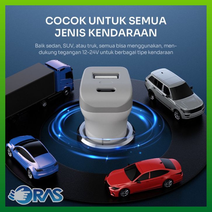 Car Charger Mobil Motor USB Power Delivery Type C Fast Charging PD 2.4A 2 Output Port Robot C09