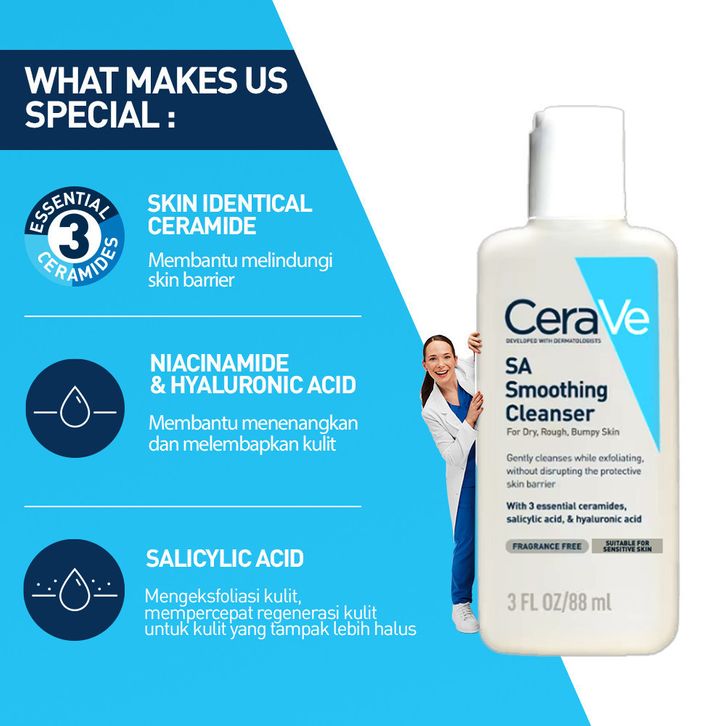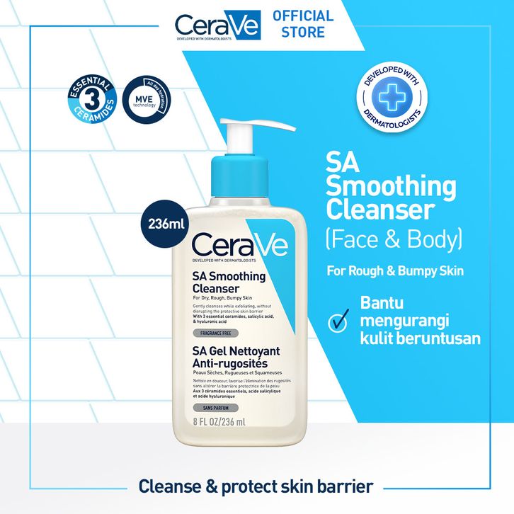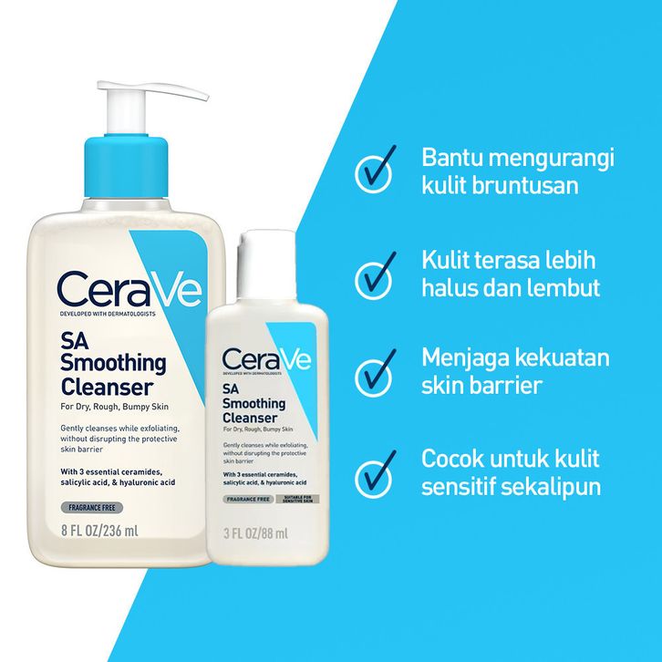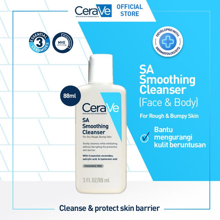 pembersih wajah muka pria wanita CeraVe SA Smoothing Cleanser – Salicylic Acid & Ceramide Face Wash for Rough & Bumpy S
