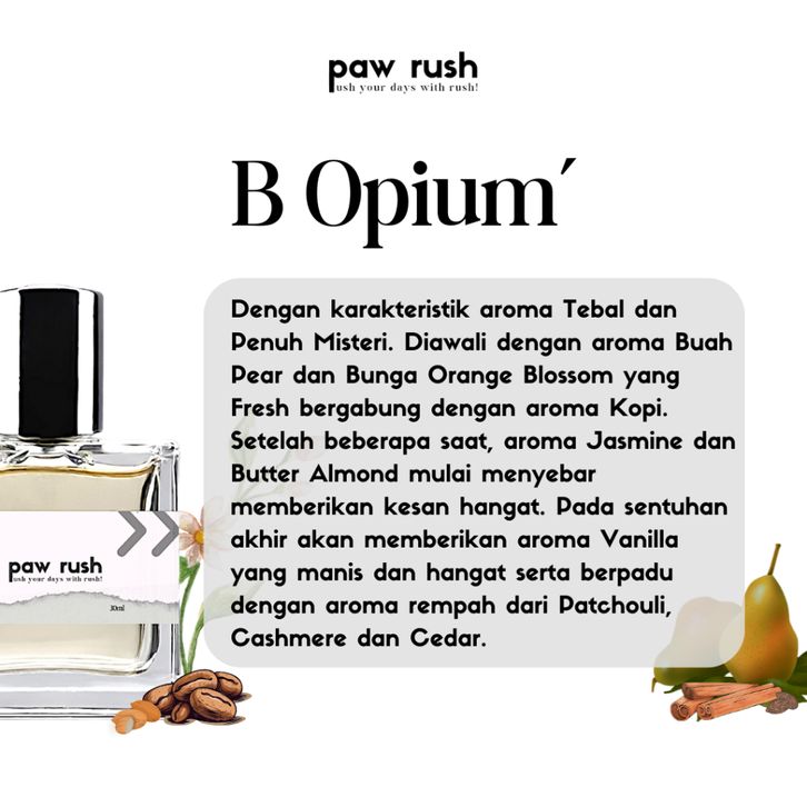Promo Parfum Unisex PawRush Perfume B Opium 30mili Inspired - Minyak Wangi Eau De Parfum Unisex Tahan Lama