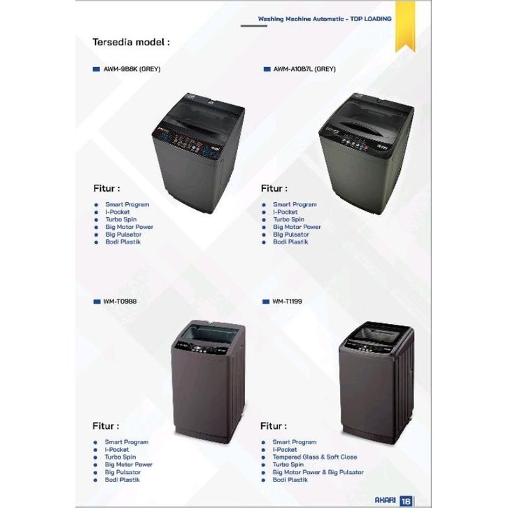 PROMO AKARI - MESIN CUCI 1 TABUNG AWM- 10B7K AUTOMATIS ORIGINAL