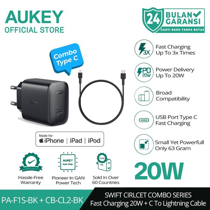 PROMO BUNDLING AUKEY Fast Charging Charger Type C 20W PA-F1S PD 3.0